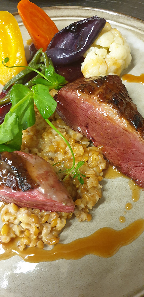 En passant par le carré de veau au filet grillé aux asperges vertes, le filet de dorade Royale consommé d'ibiscus, le turbot au champagne, notre mémorable entrecôte XXL cuite au feu de bois, le tournedos de boeuf aux morilles ou encore le filet de porc fermier...